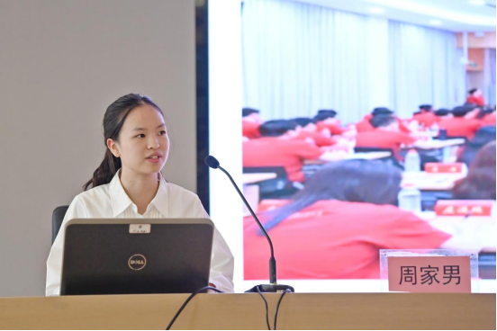 活动中,两位主讲人结合亲历抗战胜利80周年纪念大会的志愿服务经历,以“历史回望+现实实践”的视角,生动诠释了伟大抗战精神的时代内涵。周家男以“昔日烽火,今日微光”为线索,分享了志愿者团队累计服务15242小时的坚守故事,通过韩雅兰“割掉我肉还有筋”的赴延安家书、彭雪枫将军“捐躯赴国难”的战地绝笔,展现了不同时代青年“把小事做到极致”的先锋底色。侯欣彤则聚焦“青年在场”,以贵州籍抗战青年谌曼里投笔从戎、牺牲于延安的事迹为例,结合自身作为“替补志愿者”的细致培训经历,强调“担当不在口号,而在每个微小行动”,呼吁当代青年以实践传承“功成不必在我,功成必定有我”的奉献精神。