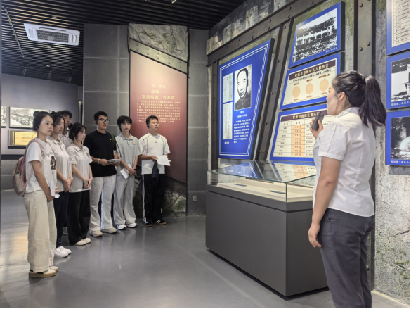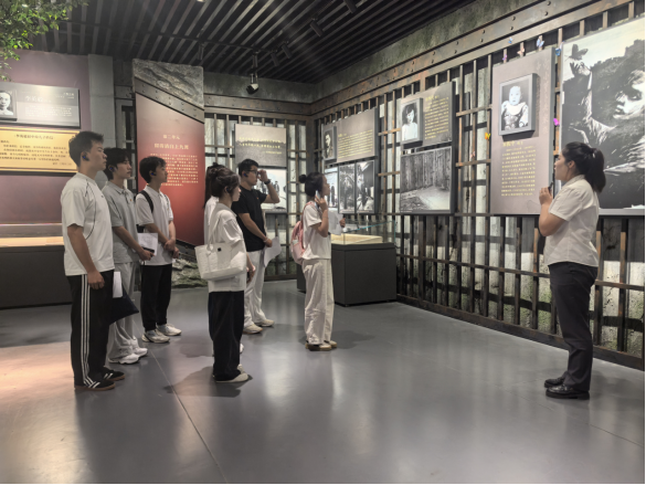 在纪念馆专业讲解员的带领下,同学们首先进行了系统性的参观学习。一件件珍贵的文物、一幅幅震撼的历史图片、一个个感人至深的革命故事,让同学们深刻感受到了革命先烈们坚定的理想信念、浩然的革命正气和崇高的献身精神。随后,经过前期培训和准备,我校遴选的“青年红色讲解员”们在特定展区,结合自身所学所思,与讲解员老师深入交流、分享感悟。这一过程,不仅是对历史知识的深化理解,更是对理想信念的内化升华,将有力助推学生从“被动听”到“主动讲”的转变,使思政教育变得更加可感、可触、可参与,极大地增强了教育效果。24级学前教育14班学生顾秋叶在感言中表示:“通过现场参观学习,‘感化室’内那股直击人心的压抑与焦虑尤为深刻,让我对这段历史的理解不再局限于文字,革命先烈的形象变得具体而生动,这种体验终生难忘!”